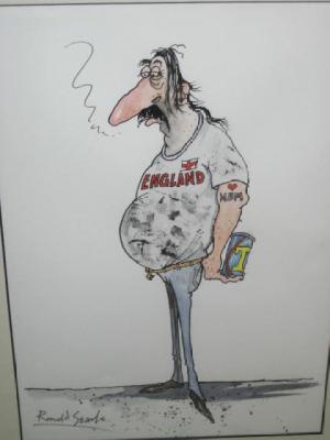 I don't believe Searle made any St. Trinian's drawings in colour until much later on in his career and he certainly wasn't signing just his initials so late. I think even by the late 40s he had dropped the R.S. & was signing the St. Trinian's drawings with his full name.