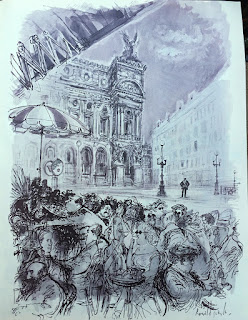 Ronald drew the Opera Garniér for the 'Paris Sketchbook' (below). He evidently found a vantage point sitting at the Café de la Paix across the square.