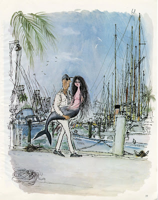 Searle’s handwritten part of the message – “Dear Francois –“, “-As ever Monica & Ronald” and the underlining of “marvellous” – are all in pink felt-tip, very typical of the late 1960s.