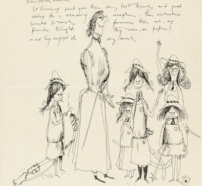 A letter from Ronald Searle to the writer and broadcaster Arthur Marshall featuring his most famous creation – the Belles of St Trinian's – caught in a moment of mischief. 'St Trinians send you their very best thanks and good wishes for a charming reception. Their activities sounded so much funnier than we, as founder, thought they were on paper! – and they enjoyed it very much'.