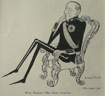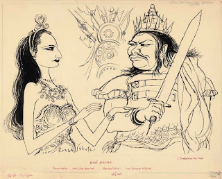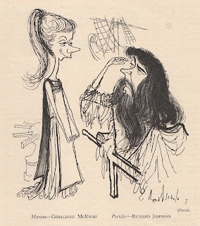 During the 50's Searle was the illustrator for the theatre review column of British satirical magazine Punch.'Searle was the first theatre-column illustrator to provide proper caricatures of artistes, and his extenive notes enabled him to show them in attitudes which playgoers would recognize in the production itself'.
