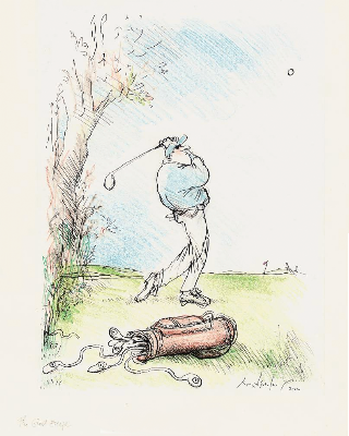 Searle certainly owes a debt to contemporaries such as Andre Francois, Sempe and of course Saul Steinberg.